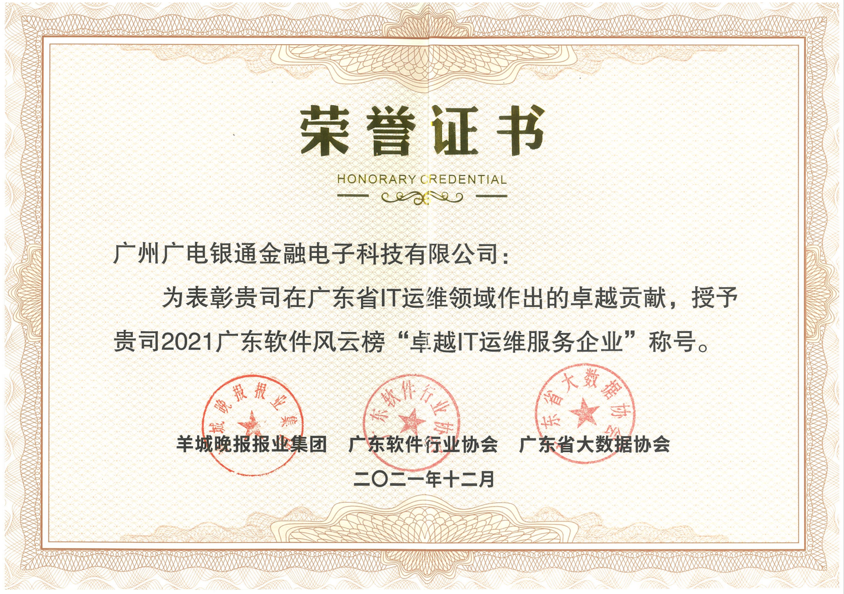 2021廣東軟件風(fēng)云榜“卓越IT運(yùn)維服務(wù)企業(yè)”稱號