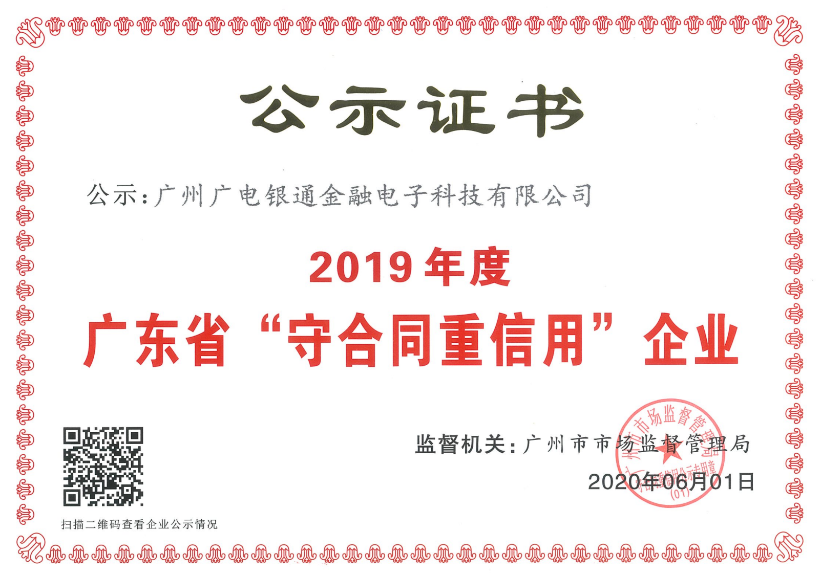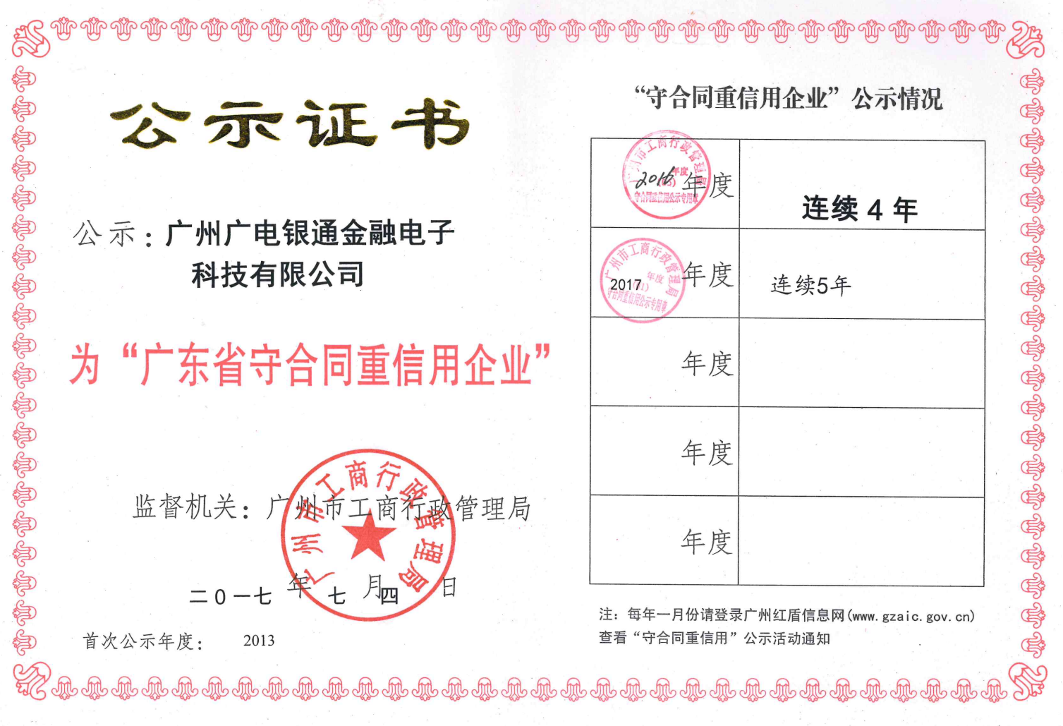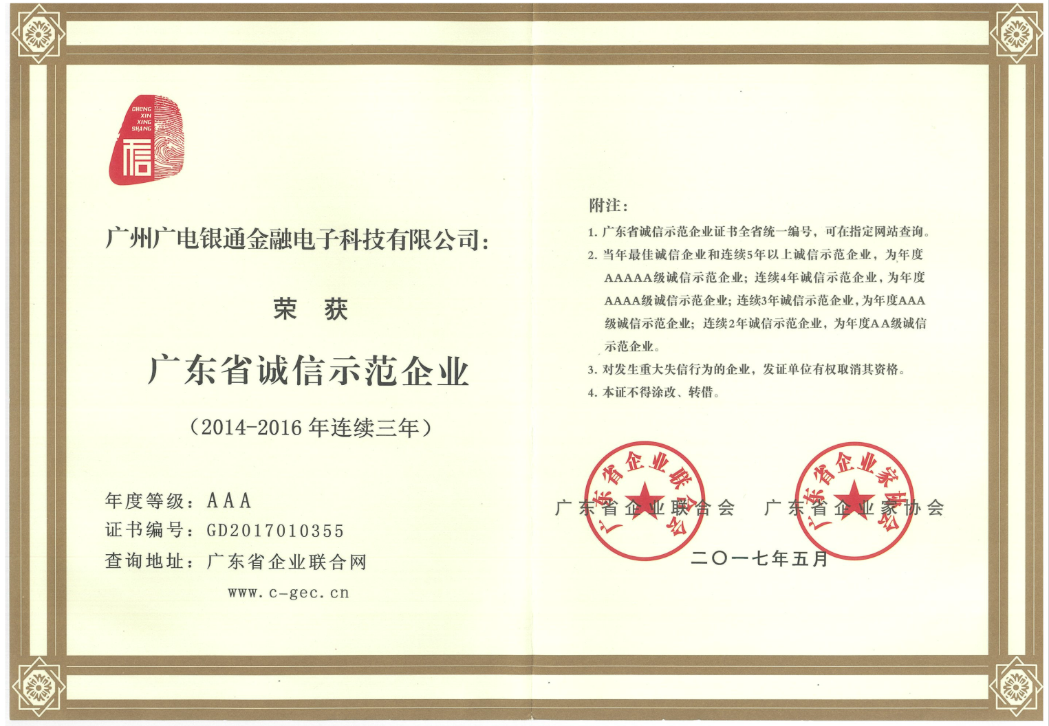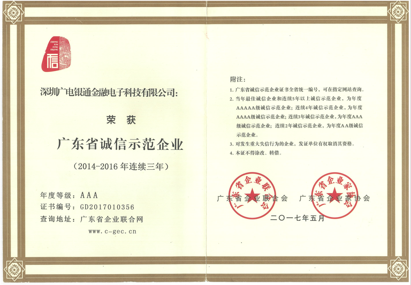 2016廣州省誠信示范企業(yè) (深圳銀通)