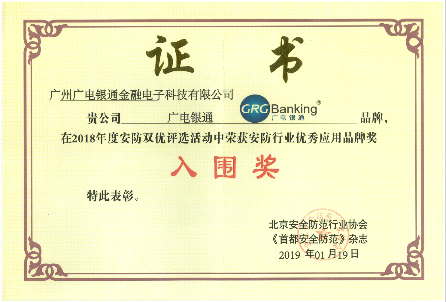 2018年度安防行業(yè)優(yōu)秀應(yīng)用品牌獎入圍獎