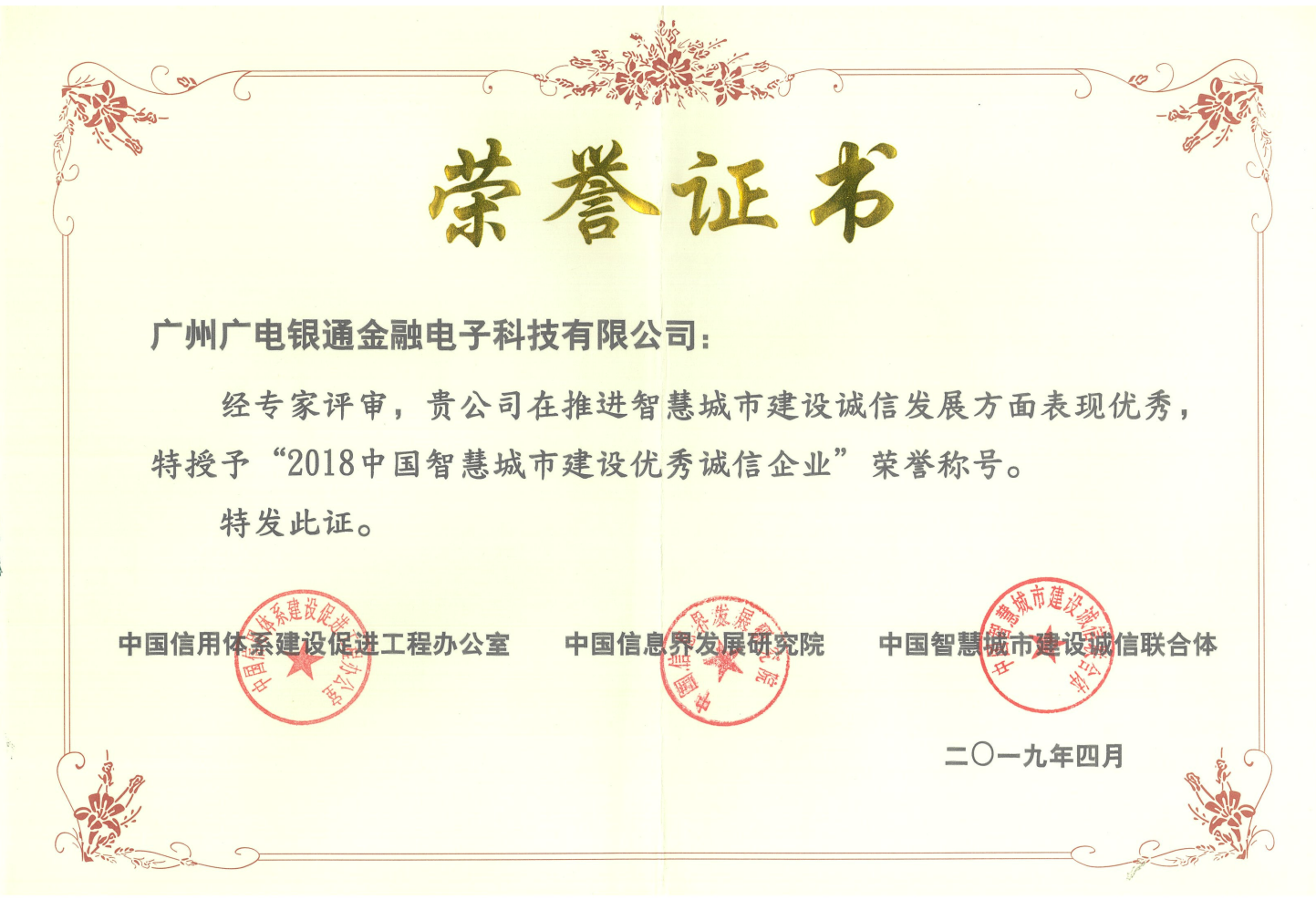2018中國智慧城市建設(shè)優(yōu)秀誠信企業(yè)