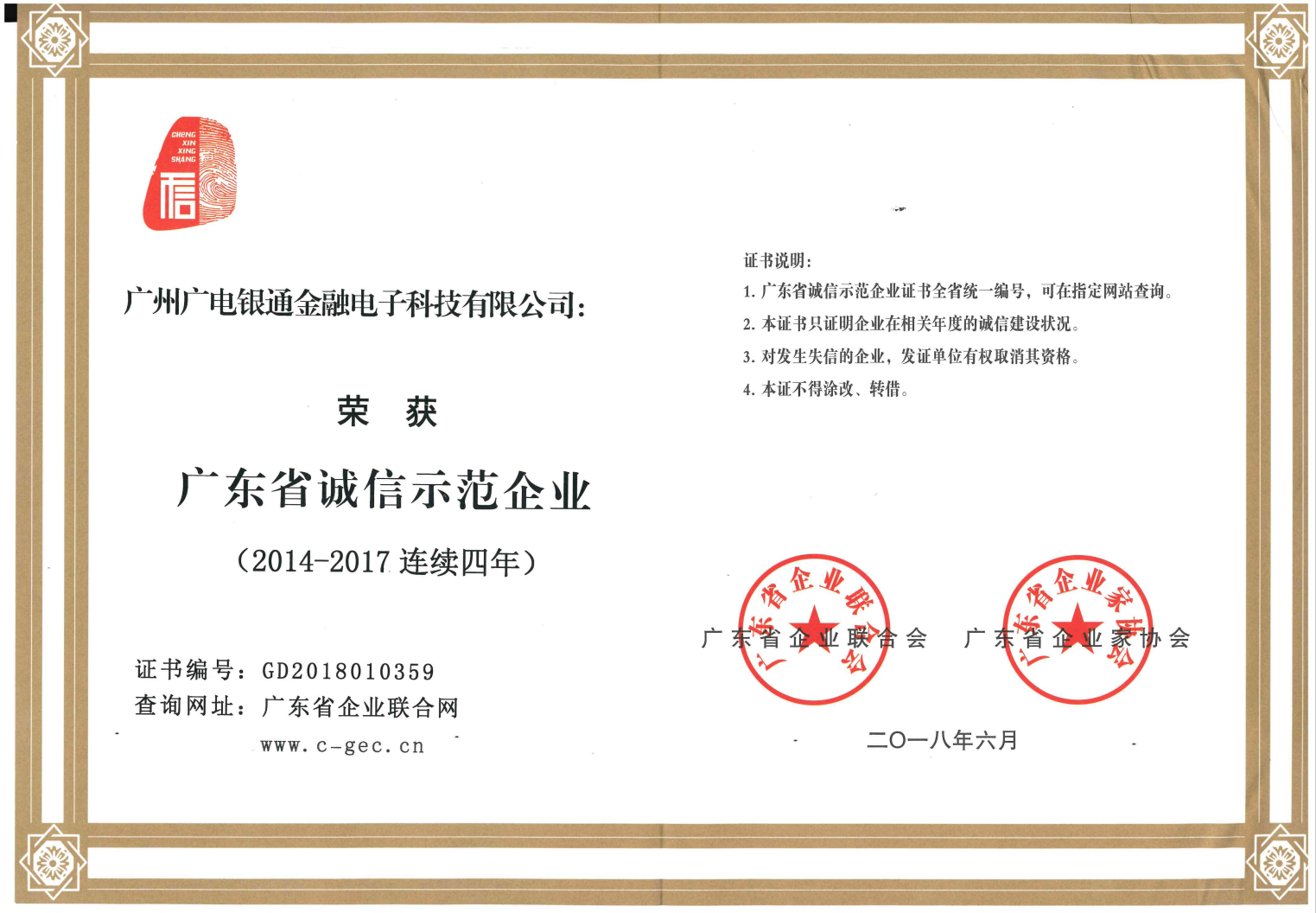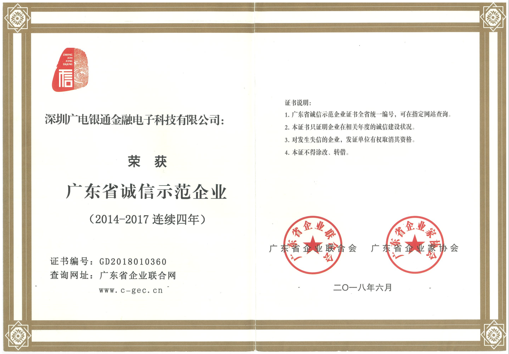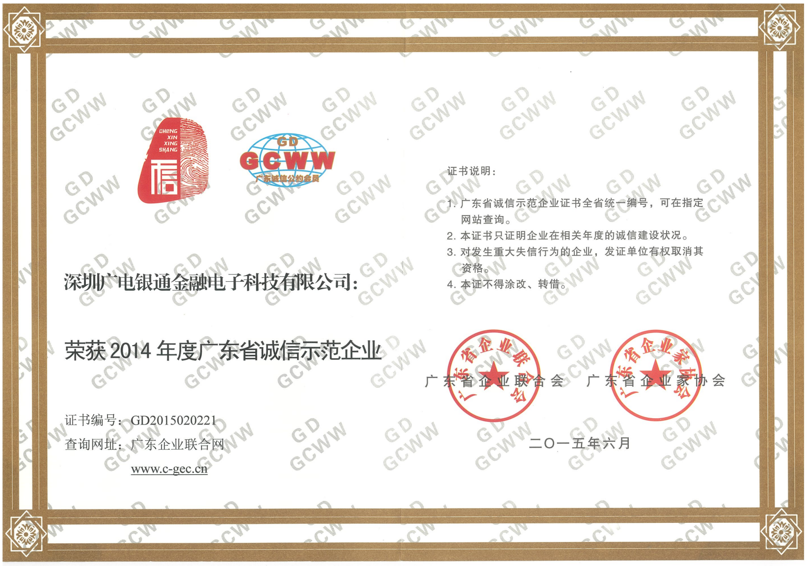 2014廣東省誠信示范企業(yè)(深圳銀通)