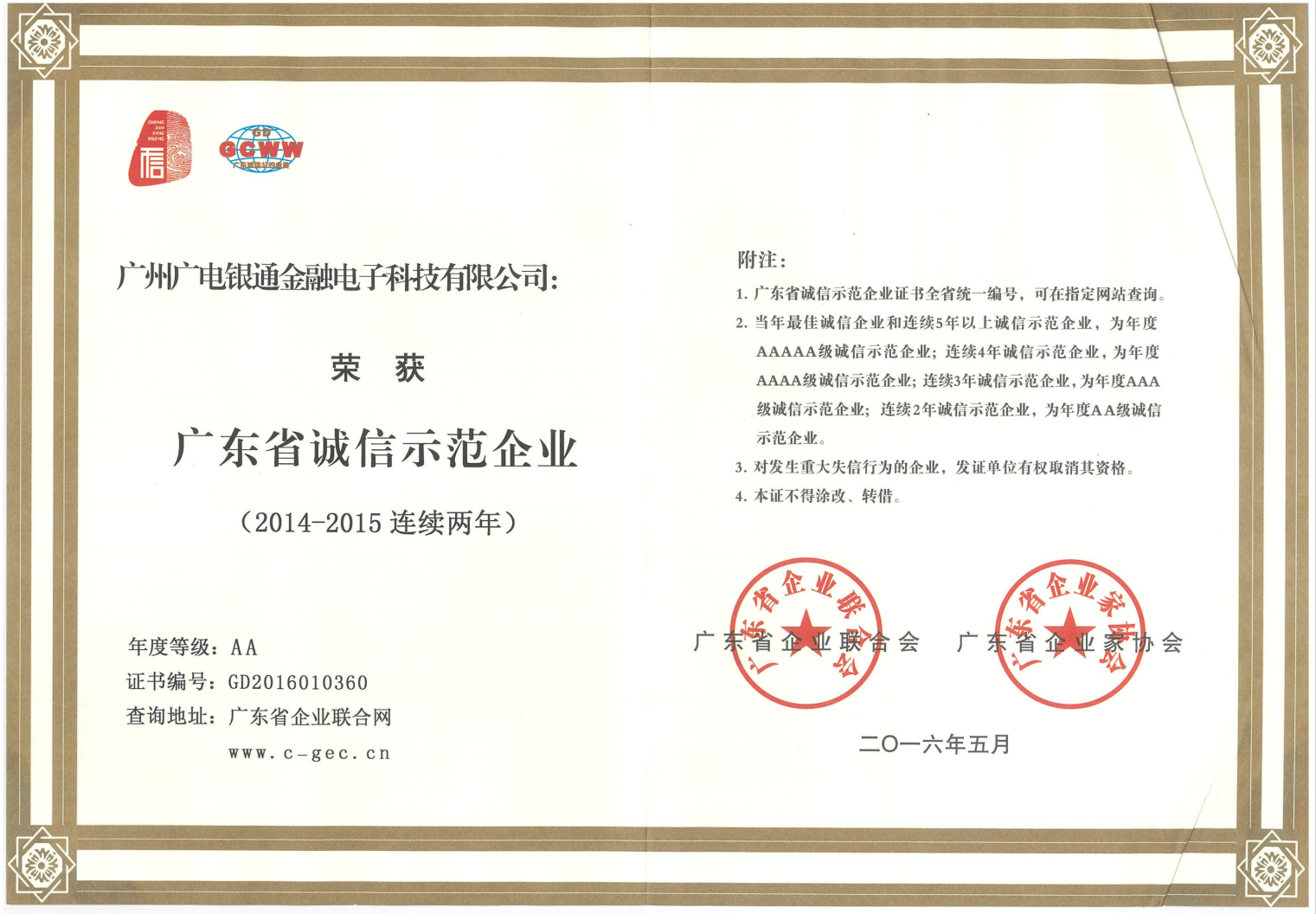 2015廣東省誠信示范企業(yè)(深圳銀通)