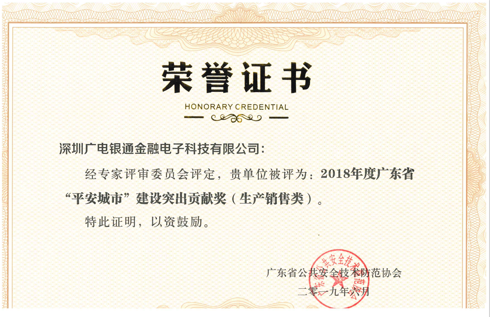 2018年度廣東省“平安城市”建設(shè)突出貢獻(xiàn)獎