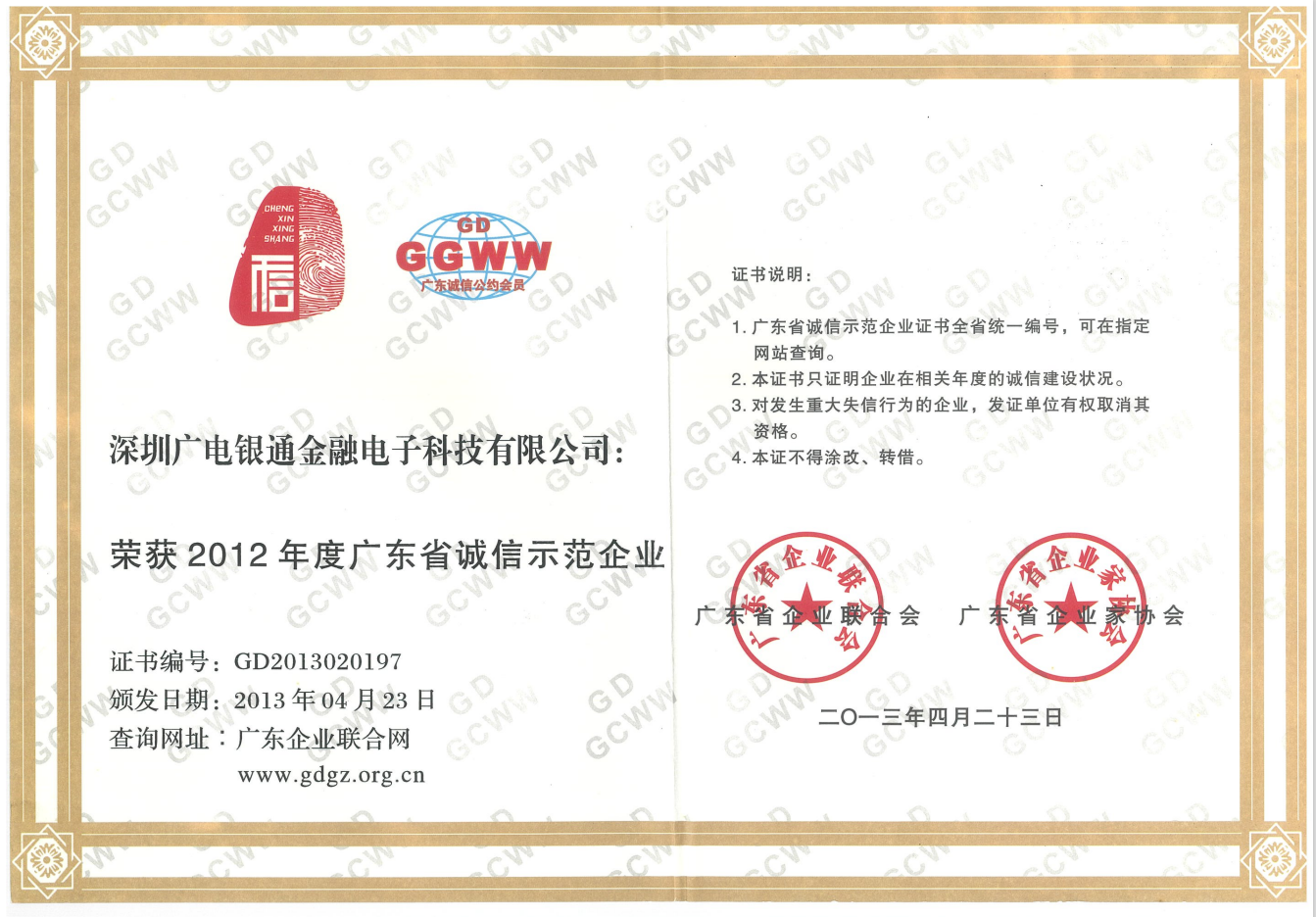 2013廣東省誠信示范企業(yè)(深圳銀通)