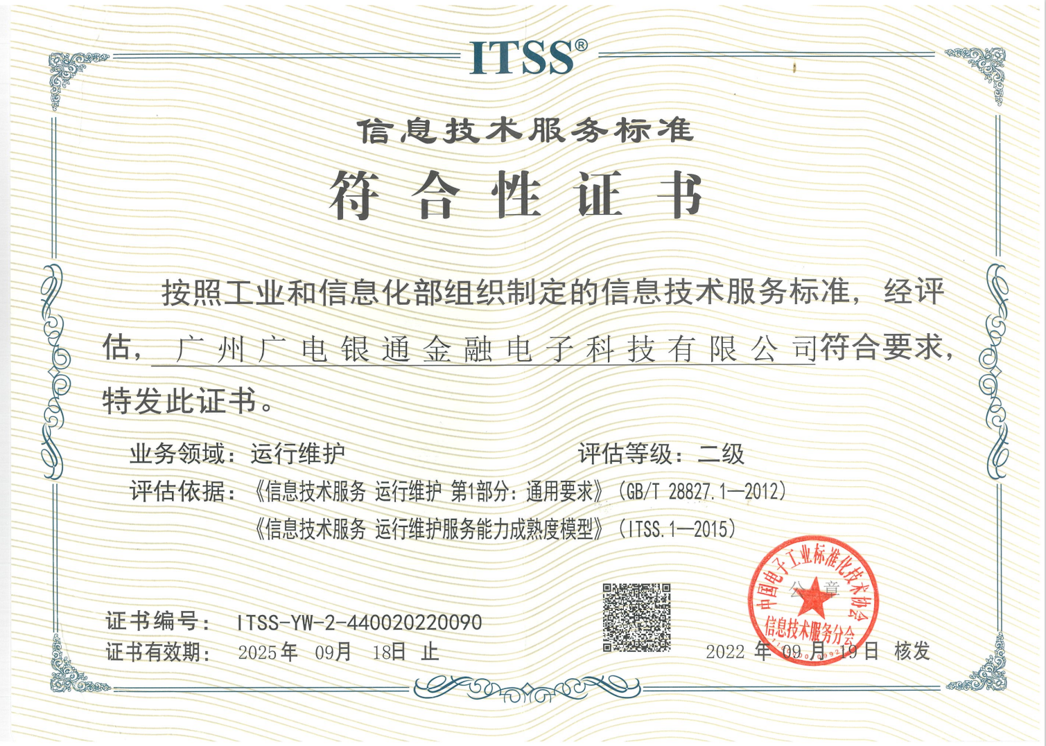 ITSS信息技術(shù)服務(wù)標(biāo)準(zhǔn)符合性證書二級