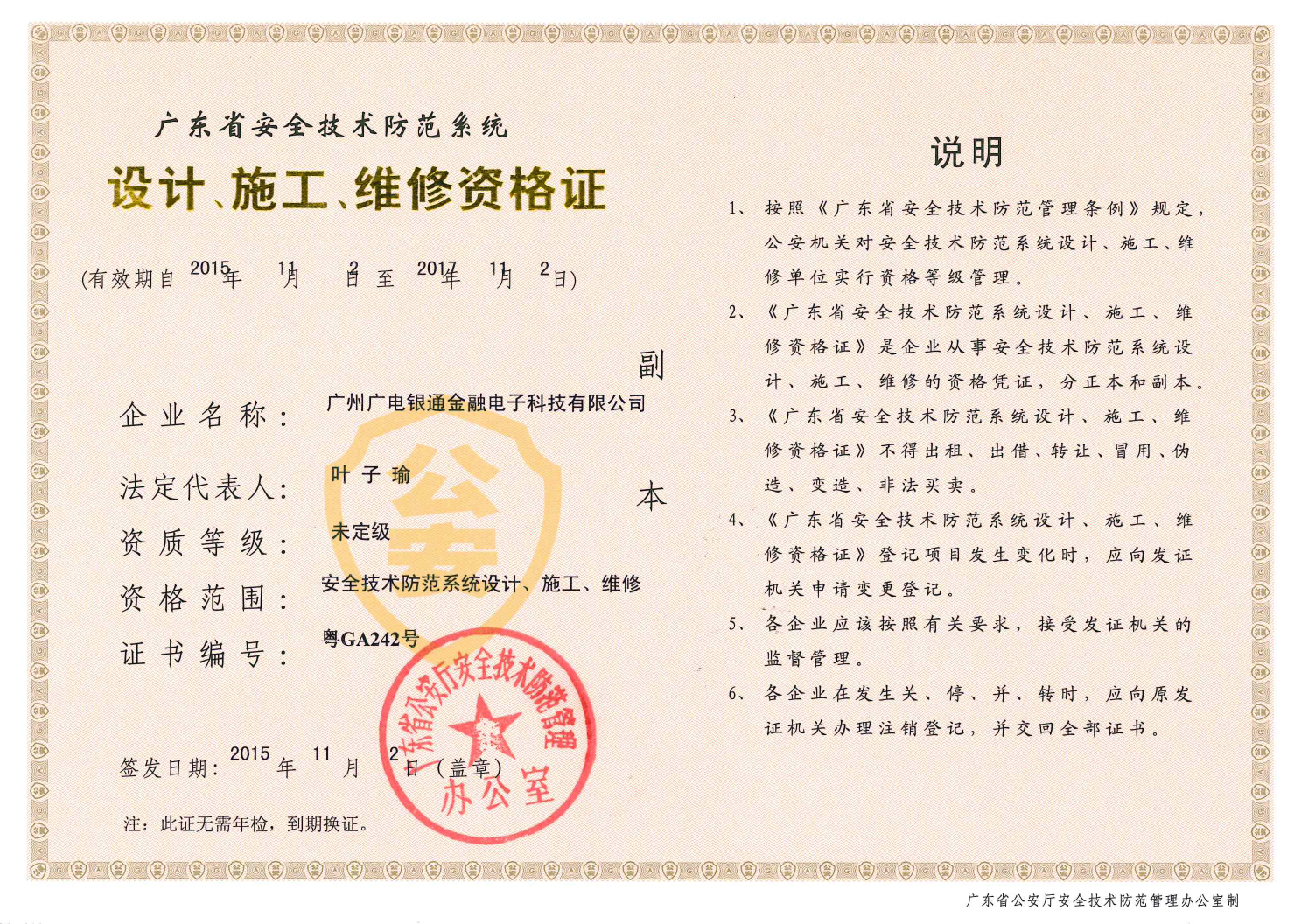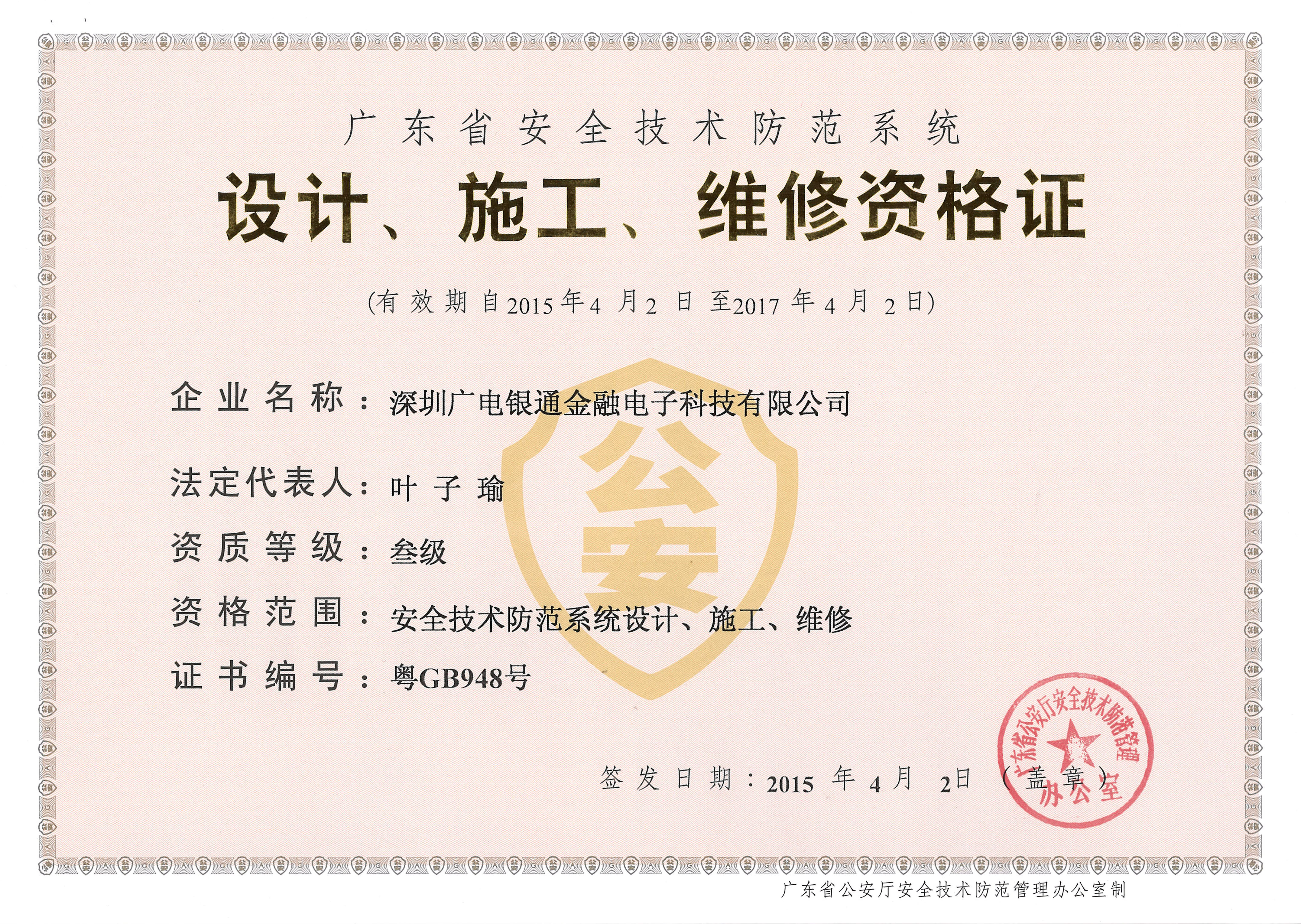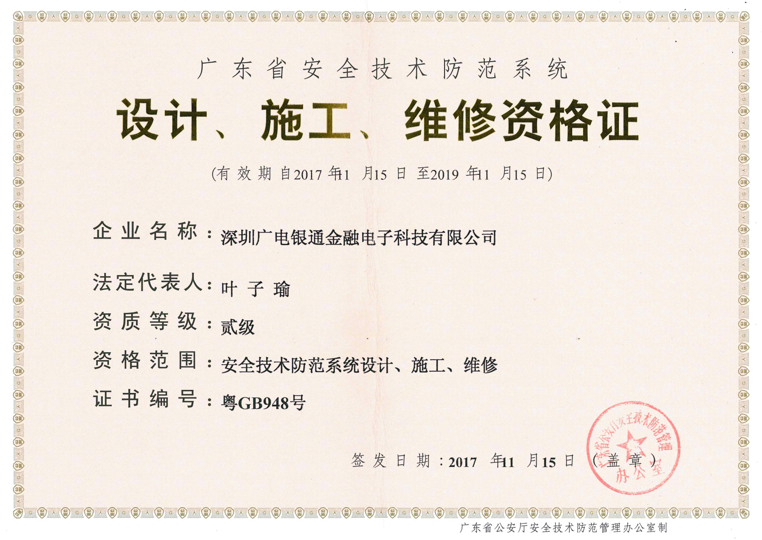 技術(shù)防范系統(tǒng)設(shè)計、施工、維修資格證二級-深圳銀通